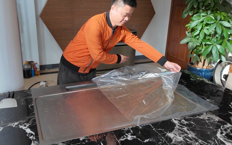 1、揭開煎板上的保護油膜;